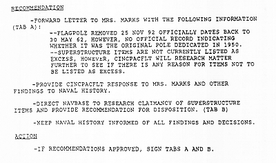 Naval History. In addition to Mrs. Marks desires, I understand the Park